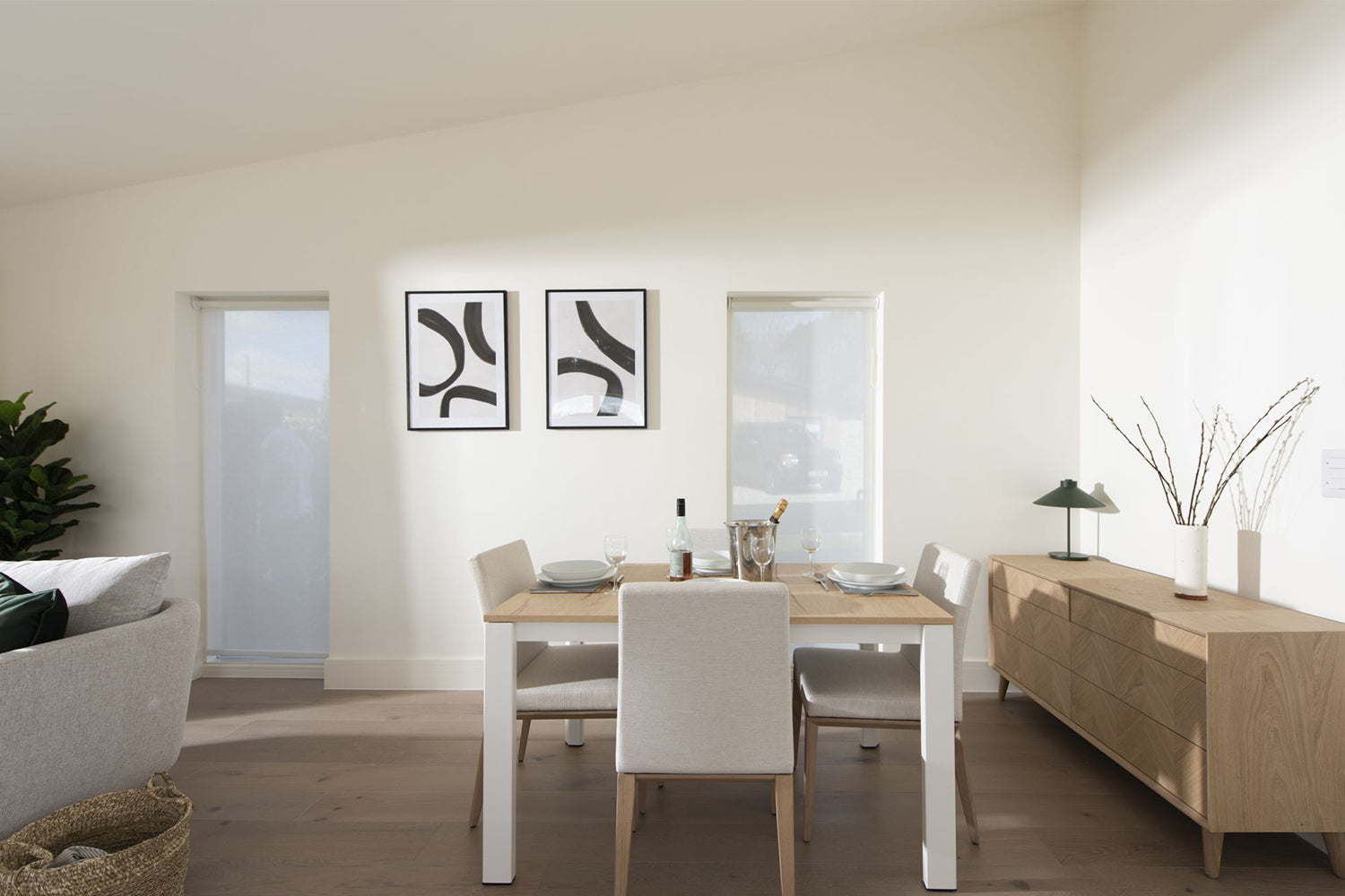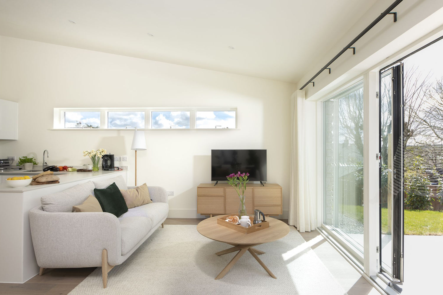 iroka was asked to fully furnish this contemporary holiday home, giving a fresh earthy feel whilst keeping surfaces durable and robust. iroka have installed modern window dressings to soften the large windows but not to jeopardize the beautiful natural light.