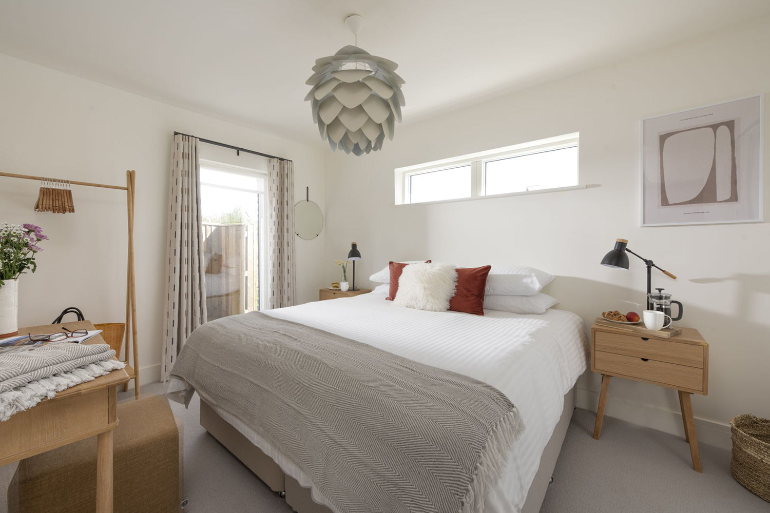 Clean linen tones against earthy burnt oranges and forest greens give the interior a wonderfully fresh feel for a holiday home which certainly stands out from the crowd.