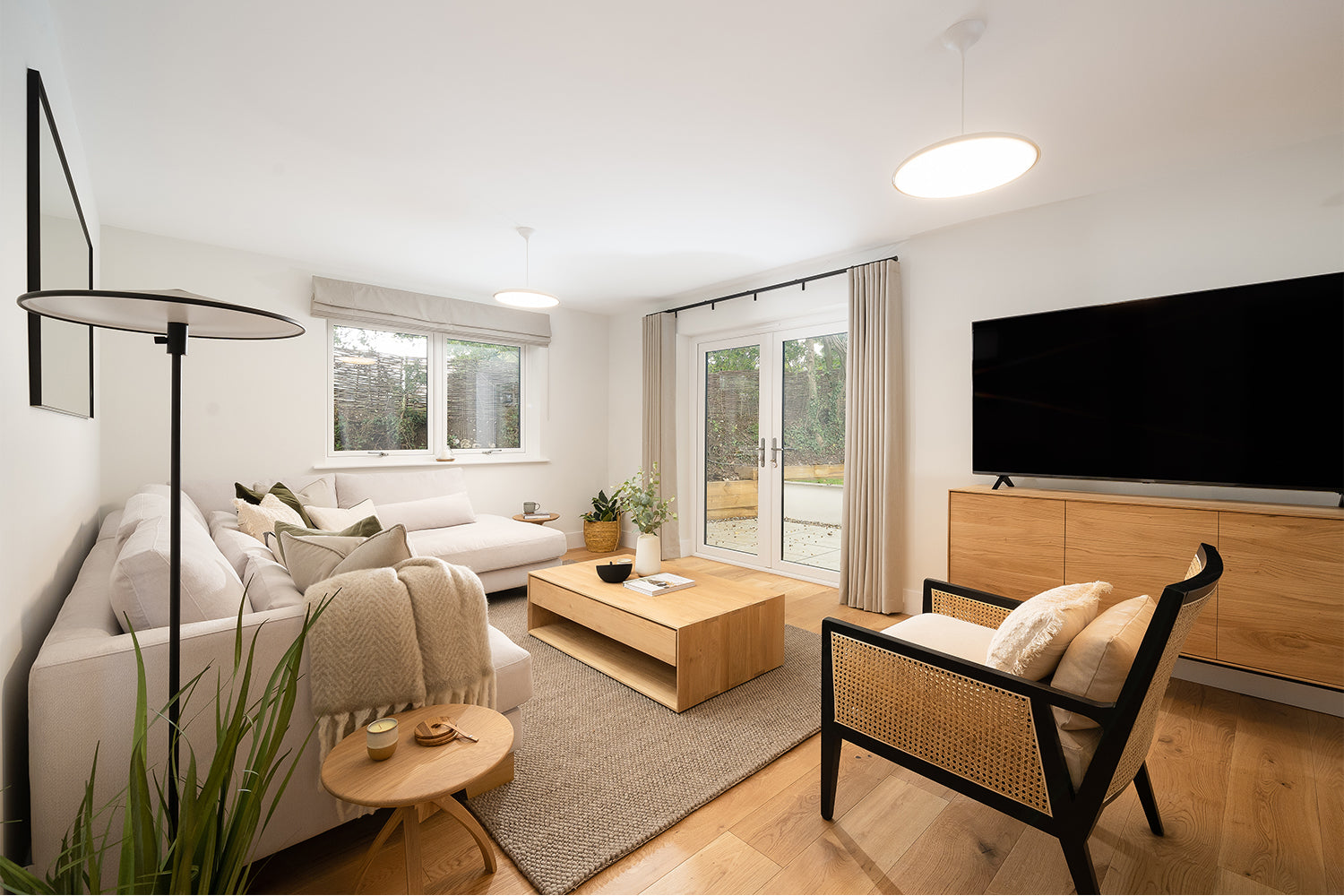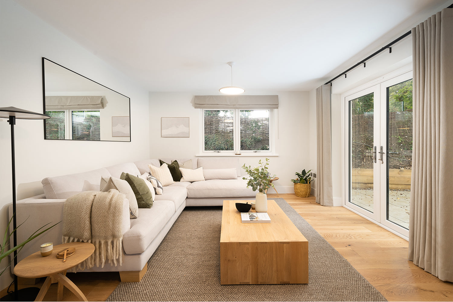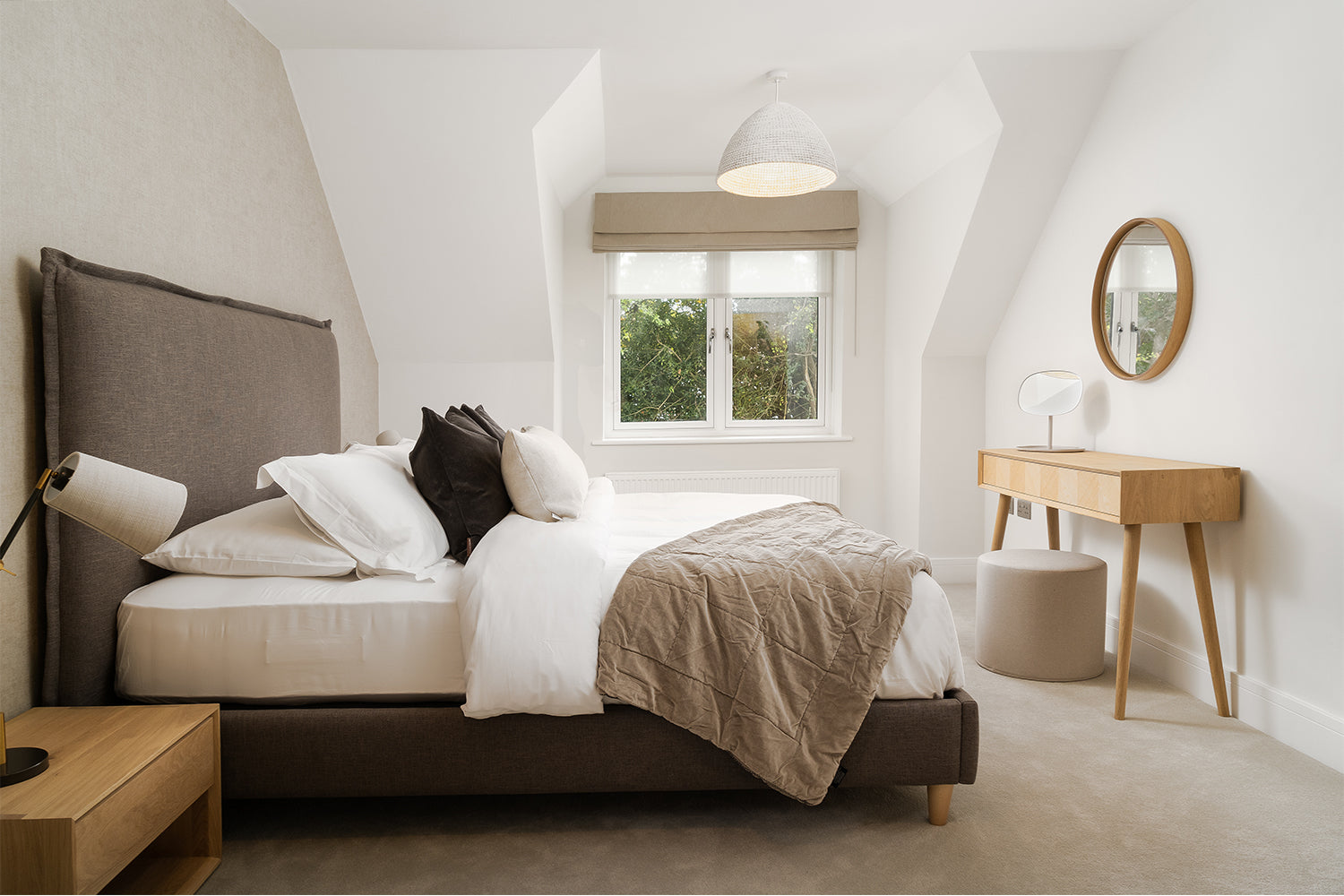 A neutral colour palette was chosen by our design team which runs throughout the contemporary property, using Ecru tones & solid Oak furniture which contrast against black finishes & accessories. Giving a dramatic look.