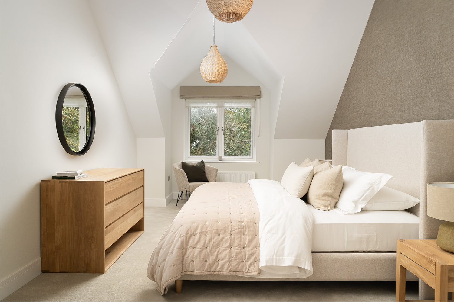 Subtle textured wallpapers were selected in each bedroom to give depth and comfort. The show home was then finished, dressed, styled, and photographed by our in-house team.