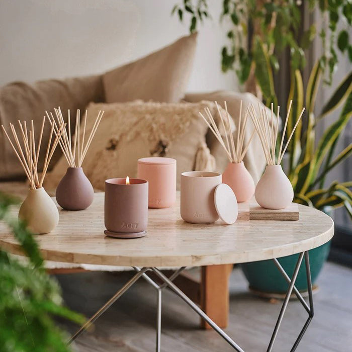 For the more design-conscious interiors. a matte clay pot that is perfect for re-using either for bathroom essentials or single stem flowers. Full of warming scents to inspire a sense of grounding.